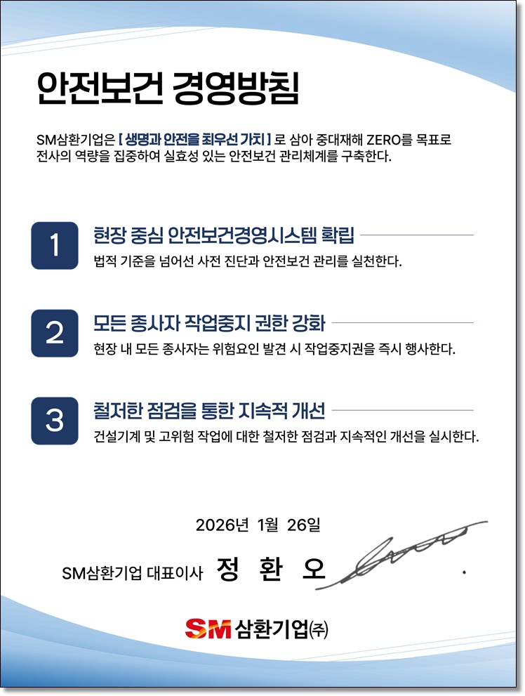 가장 안전한 방법으로 경영목표를 달성할 수 있도록임직원 모두가 엄중히 결의합니다.
